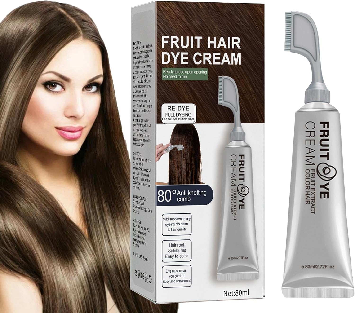 Crema para el cabello con peine para cubrir canas, 80 ml, extracto de fruta, cubierta para el cabello para mujeres y hombres